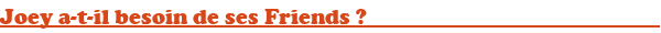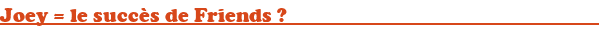 Joey devrait-il s'appeler Joey ? Plus que n'importe quelle autre série de cette rentrée télé, le spin-off de Friends suscite de nombreuses questions : La série peut-elle égaler les scores d'audiences de Friends ? Matt LeBlanc peut-il être l'acteur principal d'une série ? Les fans aimeront-ils Joey Tribbiani comme acteur principal autant que lorsqu'ils étaient six ? Avec Joey qui reprend la case horaire de Friends à 20h, NBC réussira-t-elle à conserver sa fameuse prédominance du jeudi soir dont elle jouit depuis l'arrivée du Cosby Show en 1984 ? Ou, est-ce le début de la fin ?